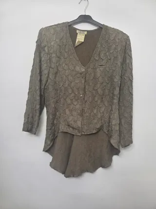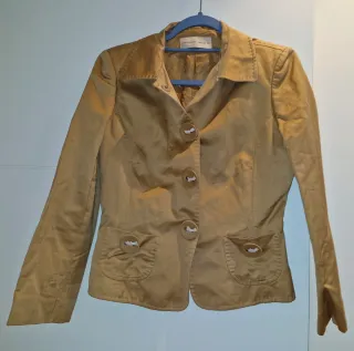 Chaqueta estilo militar o sahariana en un bonito tono verde oliva. Cuenta con un cinturón para ajustar la cintura y un diseño muy práctico. Aunque es talla S es como una M - Cierre de botones. - Dos bolsillos en el pecho. - Puños con detalle. - Cinturón a juego.