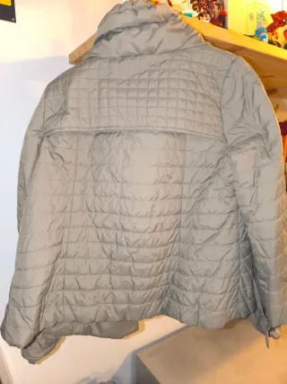 Chaqueta acolchada con un diseño de rombos. - Cuello redondo. - Cierre de cremallera. - Bolsillos delanteros con botón. - Usada una sola vez