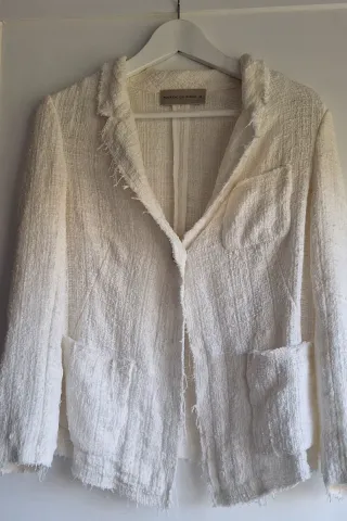 Chaqueta de tejido texturizado en color blanco. - Diseño con solapas y bolsillos. - Acabado deshilachado en cuello, puños y bajo.