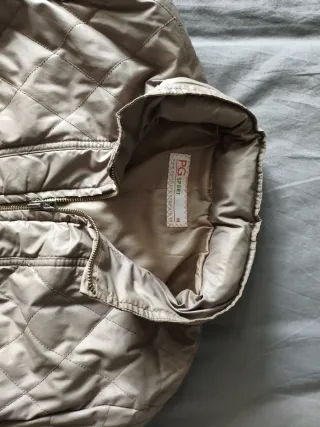 Chaqueta acolchada de la marca Purificación Garcia. - Color beige dorado. - Talla L (40/12). - Cierre de cremallera y botones. - Bolsillos laterales con cremallera. - Relleno 100% plumón