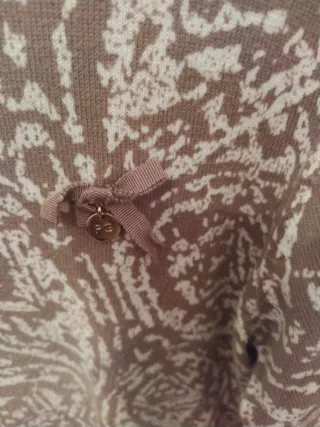 Chaqueta de punto con cuello redondo y estampado. Medidas: 31 cm de hombros. Alto 51 cm. Algodón cien por cien. - Cierre de botones. - Detalle de broche en la solapa. - Bolsillos delanteros con ribete.