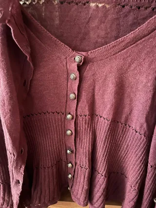 Chaqueta de punto con botones metálicos y detalles calados y top a juego - Manga larga. - Cuello en V. - Diseño acampanado en la parte inferior.