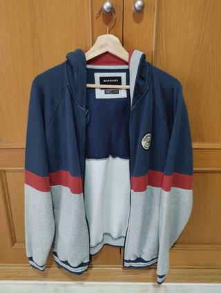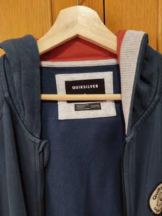 Chaqueta con capucha y cremallera de la marca Quicksilver. Está en buen estado, aunque presenta algunas señales de uso. - Bolsillos delanteros - Cierre de cremallera
