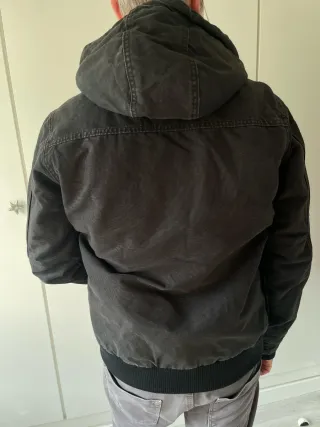 Chaqueta con estampado a cuadros en tonos grises y negros. Talla S pero mi marido lleva la L y le vale perfectamente. - Diseño con capucha. - Cierre frontal. B4