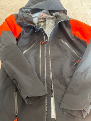 Chaqueta de alta calidad con detalles en naranja y gris. - Material Gore-Tex. - Sin estrenar.