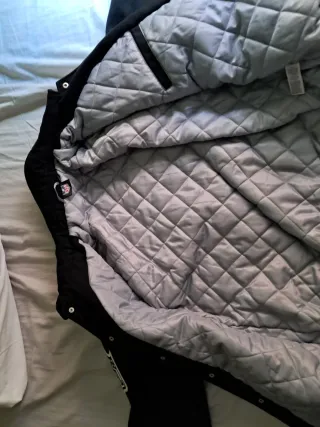 Se vende chaqueta sin estrenar de los míticos RAIDERS de la NFL. TALLA M "amplia" Negra, blanca y gris "brillo". Forro interior. Bolsillos laterales e interior. Logos en ambas mangas, pecho y espalda.