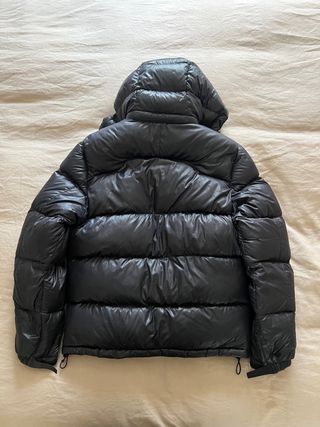 Chaqueta acolchada con acabado brillante. - Diseño con capucha. - Cierre frontal con cremallera. - Bolsillos laterales con cremallera.