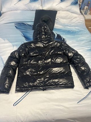 Chaqueta acolchada con acabado brillante. - Diseño con capucha. - Cierre de cremallera frontal. - Bolsillos laterales.