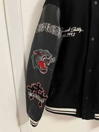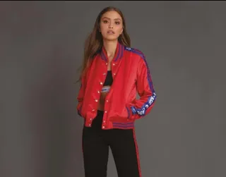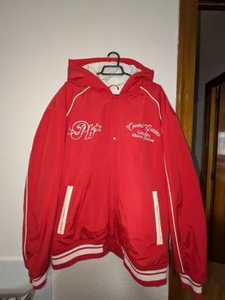 Chaqueta estilo varsity de Pull&Bear. - Diseño en color rojo. - Detalle de bordados. - Puños y cuello elásticos. - Casi sin uso - Envío rápido