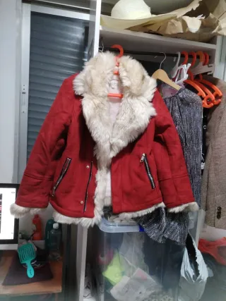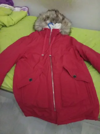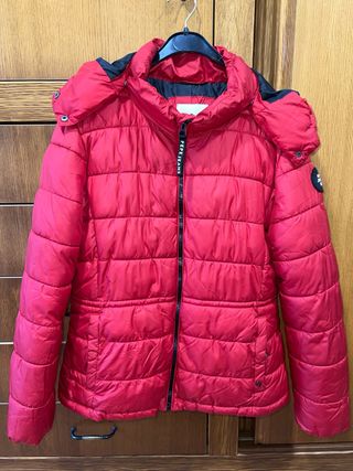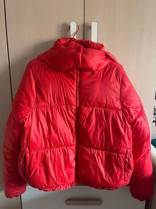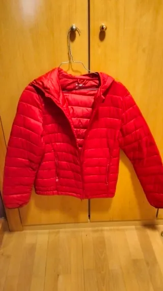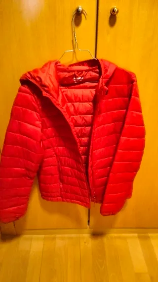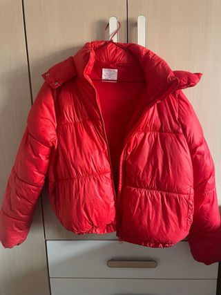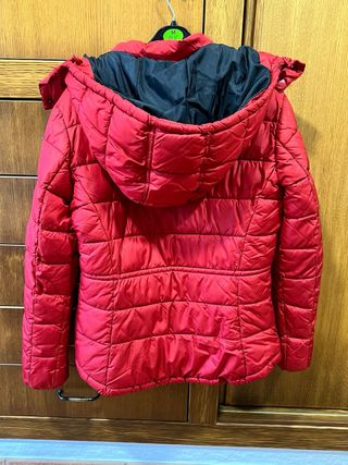 Chaqueta acolchada de color rojo con capucha. Pone talla S pero es una XS - Cierre de cremallera