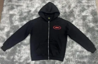 Chaqueta deportiva con un diseño moderno y llamativo. - Combinación de colores negro y rojo. - Cuello alto. - Cierre de cremallera frontal. - Bolsillos laterales.