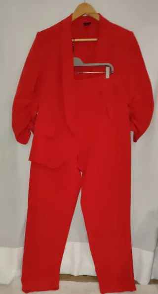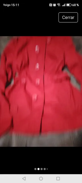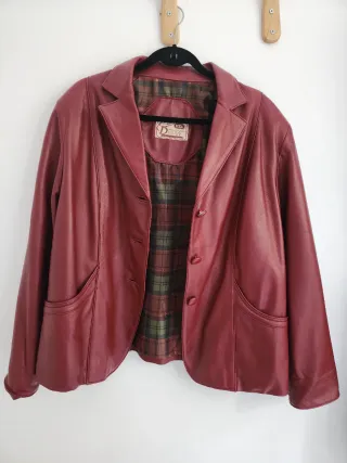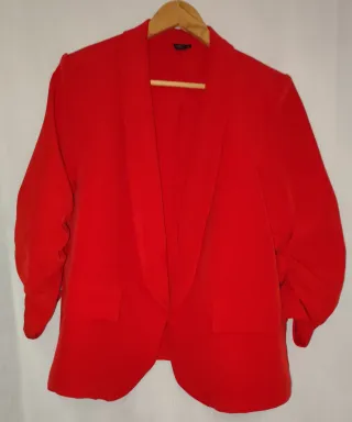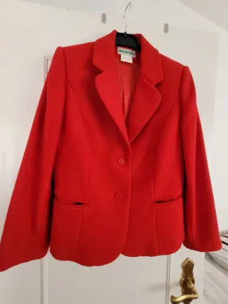 Elegante chaqueta de la marca Giardin en un vibrante color rojo. Ideal para estas fechas y como fondo de armario. Tejido y confección de calidad. 10 euros. Mira mi escaparate. Variedad y buenos precios. Todo impecable. - Diseño clásico con solapas. - Tejido texturizado. - Cierre frontal.