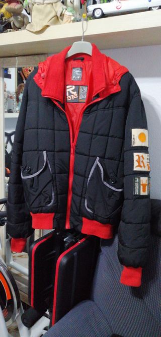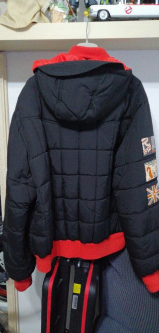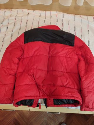 Chaqueta puffer con diseño bicolor. Presenta un cuello alto y cierre de cremallera. - Paneles en color negro. - Cuerpo principal en color rojo. - Bolsillos laterales.