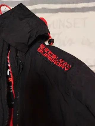 Chaqueta de montaña Superdry con un diseño llamativo. - Exterior en color negro. - Interior y detalles en color rojo. - Capucha integrada.