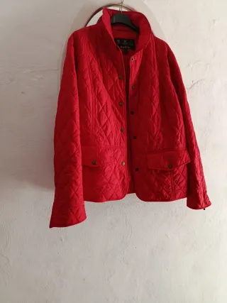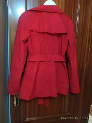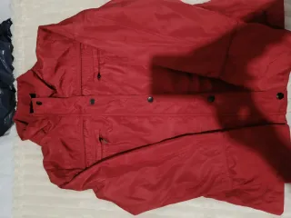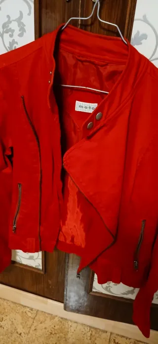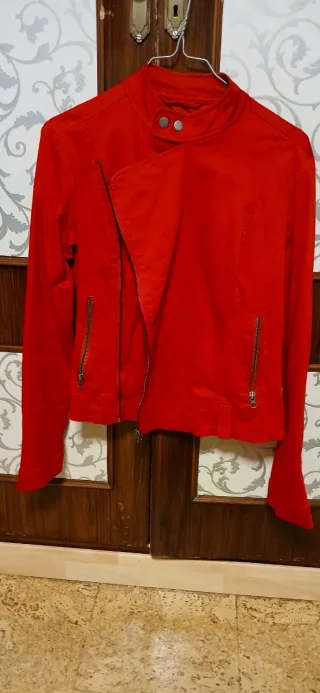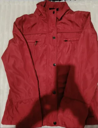 Chaqueta de mujer en color rojo, talla M. Un básico para tu armario. - Diseño con cuello alto. - Cierre de botones a presión. - Dos bolsillos superiores con cremallera. - Dos bolsillos inferiores. - Puños ajustables.