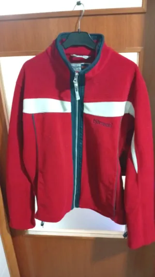 Chaqueta polar de la marca Bjornson con un diseño moderno. - Color principal rojo con detalles en blanco. - Cuello alto con ribete azul marino. - Cremallera frontal completa.