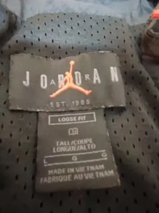 Chaqueta deportiva Jordan para hombre con detalles en contraste. - Cierre de cremallera frontal. - Ribetes rojos en cuello, mangas y puños. - Logo de Jordan en el pecho.