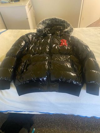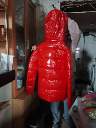Chaqueta acolchada con acabado brillante. - Diseño con capucha. - Cremallera frontal. - Puños elásticos.
