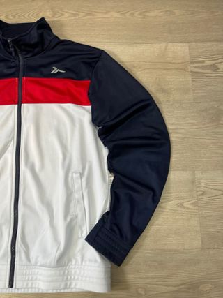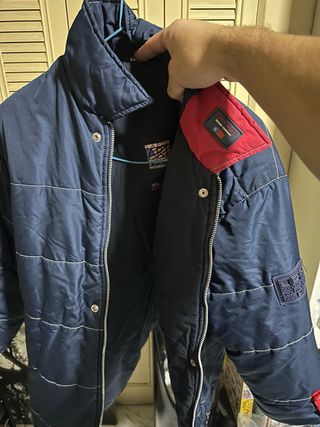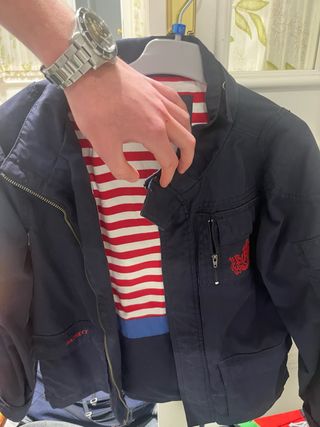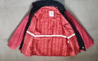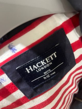 Chaqueta de la marca Hackett con un diseño llamativo. - Combinación de colores azul y rojo. - Cierre de cremallera frontal. - Bolsillos con cremallera. TALLA 11-12 TIENE EL NOMBRE PUESTO EN BOLI, PERO SEGURAMENTE SEA BORRABLE