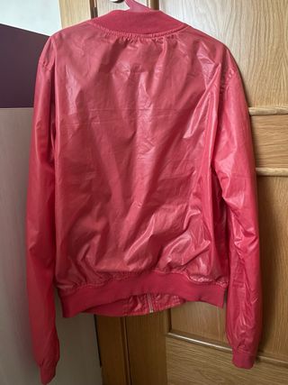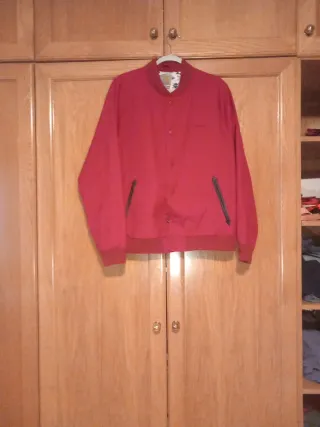 Chaqueta estilo bomber en color rojo. - Cierre de cremallera frontal. - Dos bolsillos laterales con botón. - Puños y bajo elásticos.