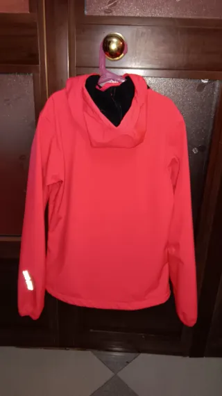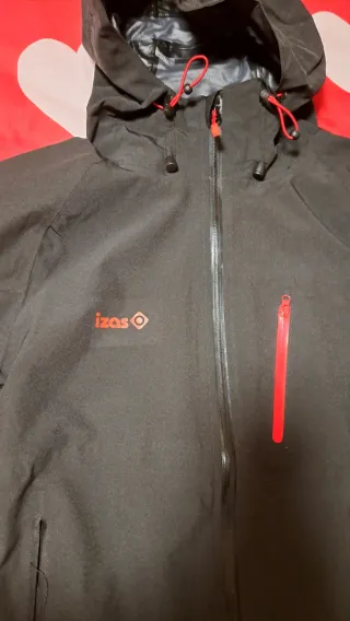 Chaqueta técnica Izas con detalles en rojo. - Diseño con capucha. - Cremalleras frontales y en bolsillos. - Logo de la marca en el pecho y manga.como nueva