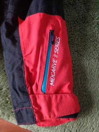 Chaqueta de esquí para niño de la marca Wed'ze. Presenta un diseño bicolor en rojo y negro. - Cierre de cremallera frontal. - Bolsillos laterales con cremallera. - Capucha integrada. - Puños ajustables.