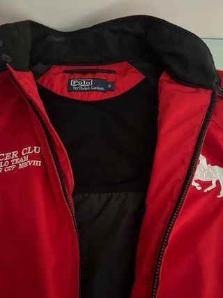 Chaqueta de la marca Polo Ralph Lauren en color negro. Presenta el icónico logo bordado en rojo. - Logo bordado en contraste. - Cierre de cremallera.