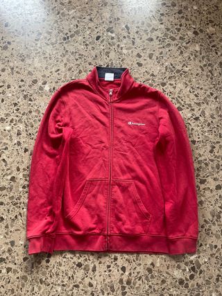 Chaqueta retro deportiva de la marca Champion. Talla M - Color rojo vibrante. - Cierre completo con cremallera. - Cuello alto. - Bolsillos delanteros.