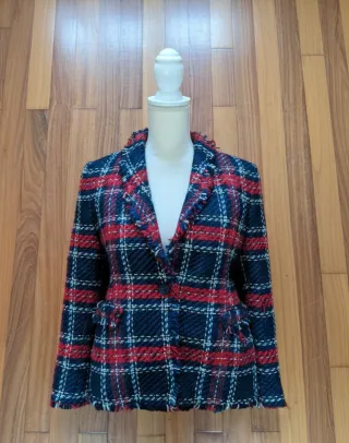 Chaqueta Tweed Zara Mujer Azul y Roja