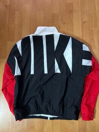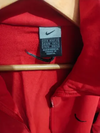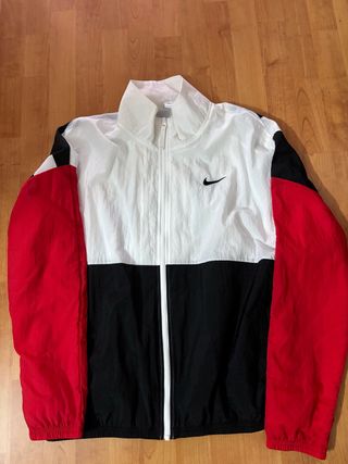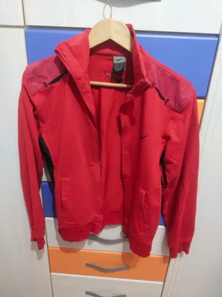 Chaqueta deportiva Nike con detalles en rojo. - Cierre de cremallera frontal. - Capucha con cordones ajustables. - Logo de Nike en el pecho.