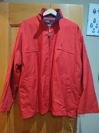 Chaqueta deportiva de la marca Polo Ralph Lauren. - Color rojo vibrante. - Diseño con logo de polo bordado en blanco. - Cierre de cremallera frontal. - Cuello alto con dos botones. - Bolsillos laterales con cierre de botón.