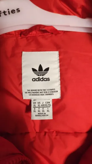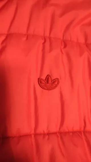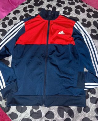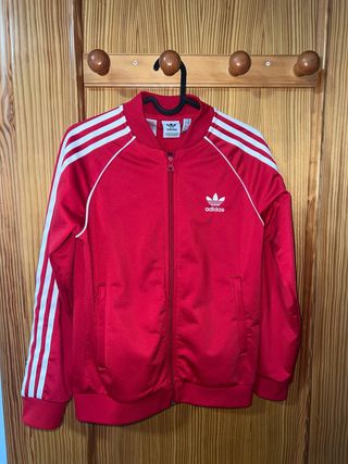Chaqueta deportiva Adidas en color rojo. - Diseño clásico con las tres rayas blancas en las mangas. - Logo de Adidas en el pecho. - Cremallera frontal completa. - Bolsillos laterales. - La vendo porque me viene pequeña.