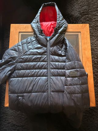 Chaqueta Decathlon con capucha y cremallera frontal. - Diseño reversible. - Bolsillos laterales con cierre. - Puños elásticos. Sin etiquetas, poco uso
