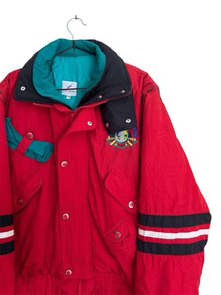 Chaqueta de la marca Daniel Hechter en color rojo y detalles en verde azulado. - Cierre de botones a presión. - Cuello alto con forro interior. - Puños y bajo elásticos. - Bolsillos frontales con solapa. - Diseño con parches decorativos en la zona del pecho. - talla : M/L sobre medidas. - ancho : 62Cm - largo : 67Cm - manga : 68Cm - estado 10/10 se le puede quitar las mangas.