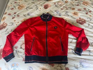 Chaqueta deportiva de la marca Paul & Shark. - Color rojo vibrante. - Cuello y puños con detalles en azul marino y blanco. - Cierre de cremallera frontal. - Bolsillos laterales con cremallera. Original Usada pero en muy buen estado