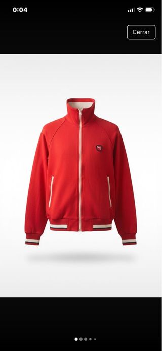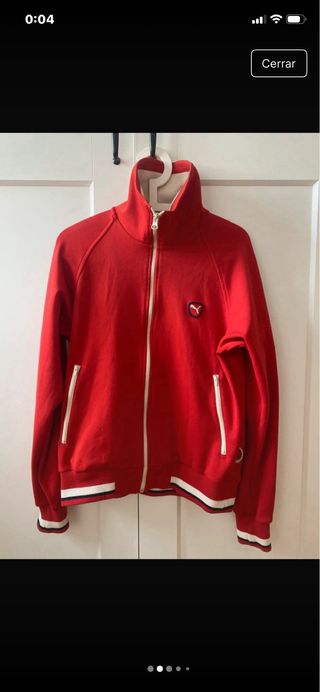 Chaqueta deportiva Puma de color rojo con cierre de cremallera. - Diseño clásico con cuello alto. - Puños y cintura elásticos con detalles a rayas. - Bolsillos laterales con ribete blanco. - Pequeño logo de Puma en el pecho Logo grande bordado en la espalda