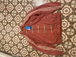 Chaqueta deportiva Adidas con un diseño especial inspirado en el Año Nuevo Chino. Nueva sin estrenar con codigo QR original en las etiquetas • Talla: M. • Condición: Nueva con etiquetas. • Diseño: Inspiración oriental con botones tipo alamar y cuello alto. • Detalles: Color terracota, bandas laterales en color hueso y logo frontal bordado. • Colección: Limited Edition Lunar New Year.