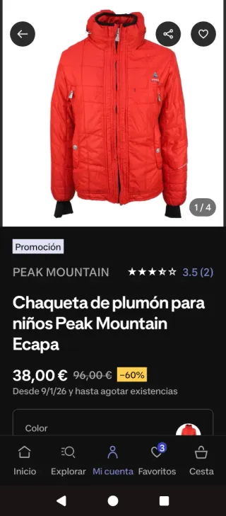 Chaqueta de plumón Peak Mountain.Talla 12 años - Diseño acolchado. - Cierre de cremallera. - Puños elásticos.