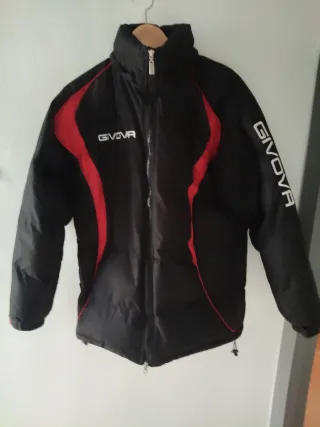 Chaqueta deportiva Givova con un diseño moderno. - Color principal negro con detalles en rojo. - Cierre de cremallera frontal. - Cuello alto.