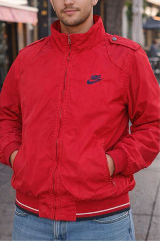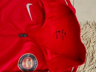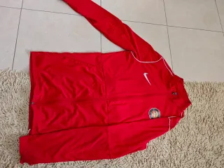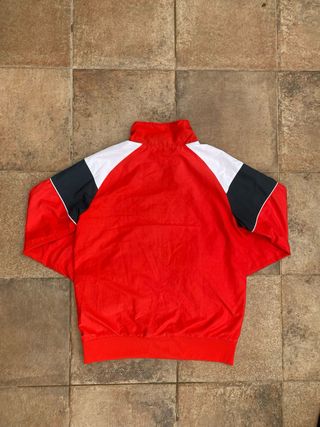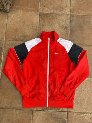 Chaqueta deportiva Nike de color rojo. - Cierre de cremallera frontal. - Logo de Nike en el pecho. - Escudo del equipo en la manga.