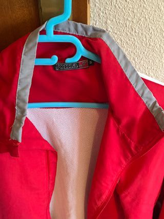 Chaqueta de la marca TREK en color rojo. - Talla M - Diseño con cuello alto y forro interior. - Cierre de cremallera frontal. - Bolsillos laterales con cremallera.