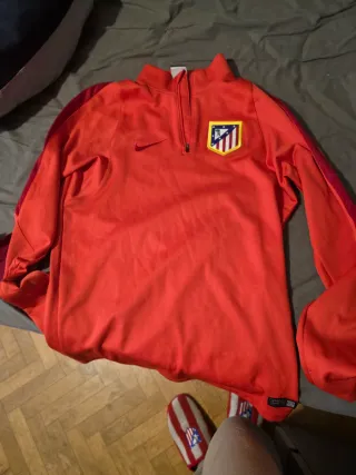 Chaqueta o sudadera del Atlético de Madrid. Chaqueta de entrenamiento oficial usada muy pocas veces en perfecto estado - Diseño deportivo con cremallera. - Escudo del club en el pecho. - Logo de la marca visible.