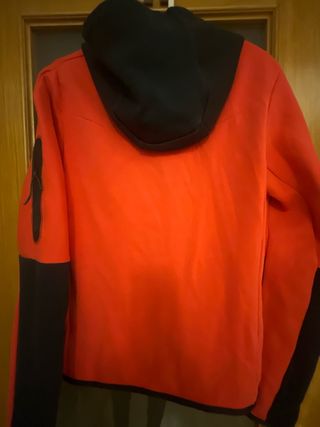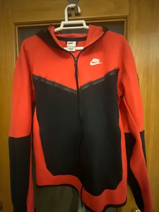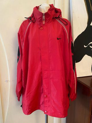 Chaqueta deportiva con un diseño moderno y llamativo. - talla XS hombre - Combinación de colores rojo y negro. - Logo de Nike en el pecho. - 3 bolsillos - Buen genero