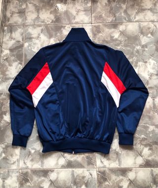 Talla L 69cm de largo 64cm de axila a axila Muy buen estado ✅ Si compráis lotes hay descuento Chaqueta deportiva vintage de la marca Puma, con un diseño retro de los años 80 y 90. Combina el color azul principal con detalles en rojo y blanco. - Diseño deportivo. - Cuello alto. - Cierre de cremallera.