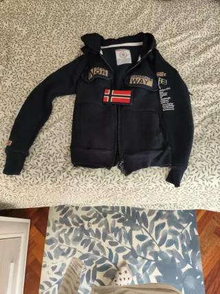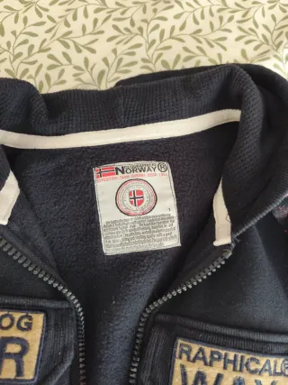 Chaqueta con diseño inspirado en Noruega. - Parche de la bandera noruega en el pecho. - Inscripción GEOGRAPHICAL WAY en la parte frontal. - Detalles de texto y banderas en la manga derecha.