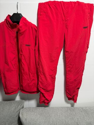 Conjunto deportivo de dos piezas. - Chaqueta con cremallera completa. - Pantalón con cintura elástica y cordón. - Diseño con logo de la marca en contraste en las mangas y perneras. Aunque el pantalón marque una XS , talla como una S