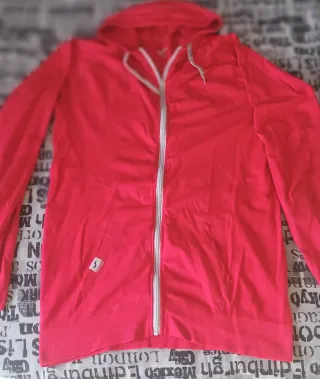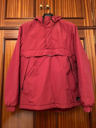 Chaqueta estilo anorak en color rojo. Como una carhartt que tiene apertura ene l lateral también. - Diseño con capucha. - Bolsillo frontal tipo canguro. - Puños elásticos en mangas y cintura. Esta en buenas condiciones.