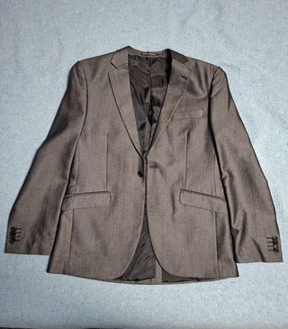 Vendo traje de hombre de la marca Viblotto, en muy buenas condiciones, tiene muy pocos usos y siempre ha estado almacenado en su funda como se ve en la última foto. Incluyo la chaqueta de la talla 52/46, con dos bolsillos exteriores y 4 interiores, 80% poliéster y 20% viscosa, y forro rojo de 50% viscosa y 50% poliéster. Pantalón de talla 46 con botonera y cremallera y 4 bolsillos exteriores, de 80% poliéster y 20% viscosa.
