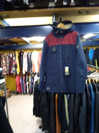 Chaqueta de la marca Klepper en color rojo. - Diseño moderno con detalles en negro. - Cremalleras frontales y en los bolsillos. - Cuello alto con ajuste. - Puños ajustables. tiene una pequeña mancha en el brazo y viene sin capucha . (talla M/L)