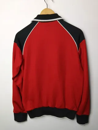 Chaqueta deportiva vintage de los años 90 con un llamativo logo. - Diseño retro. - Combinación de colores azul y rojo. - Rayas blancas en las mangas. ©️ Artículo original. 🏷️ Talla en etiqueta: F14a (equivalente a S/M revisar medidas). 📏 MEDIDAS ↕️ 62 cms largo ↔️ 50 cms sisa ↕️ 66 cms largo de manga • Leves señales de uso en fotos 🔎 • Prenda lavada y planchada 🧽 • Azul y rojo 🎨 • Poliéster 🔬 ✈️ Envíos rápidos y protegidos. ⚠️ No acepto devoluciones: todas las prendas de segunda mano pueden tener signos de uso.
